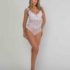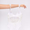 Body de tule que trabalha o bico de renda como acabamento. No busto, forro para não deixar a peça transparente, e estrutura e aro em V para valorizar seu decote. As alças são mais largas e trabalhadas com aplicação do bico da renda, trazendo charme e bossa à peça. Trabalhamos com cavas mais altas, uma tendência que valoriza a cintura e alonga as pernas. No bumbum, conta com um semi fio muito confortável, dando um charme extra. Para melhor vestir, possui abertura nas costas e no fundilho.
