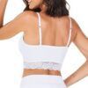 Top faixa de alças finas, feito em microfibra sem costura*. Detalhe anatômico na frente da peça, que dá ainda mais encaixe e sustentação aos seios. Aplicação de renda no decote e parte inferior do top.