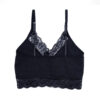 Top faixa de alças finas, feito em microfibra sem costura*. Detalhe anatômico na frente da peça, que dá ainda mais encaixe e sustentação aos seios. Aplicação de renda no decote e parte inferior do top.