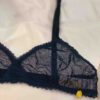 Feito em tule super leve. Alça com regulagens e detalhes em veludo. Fechamento em gancho, que pode ser usado à amostra.